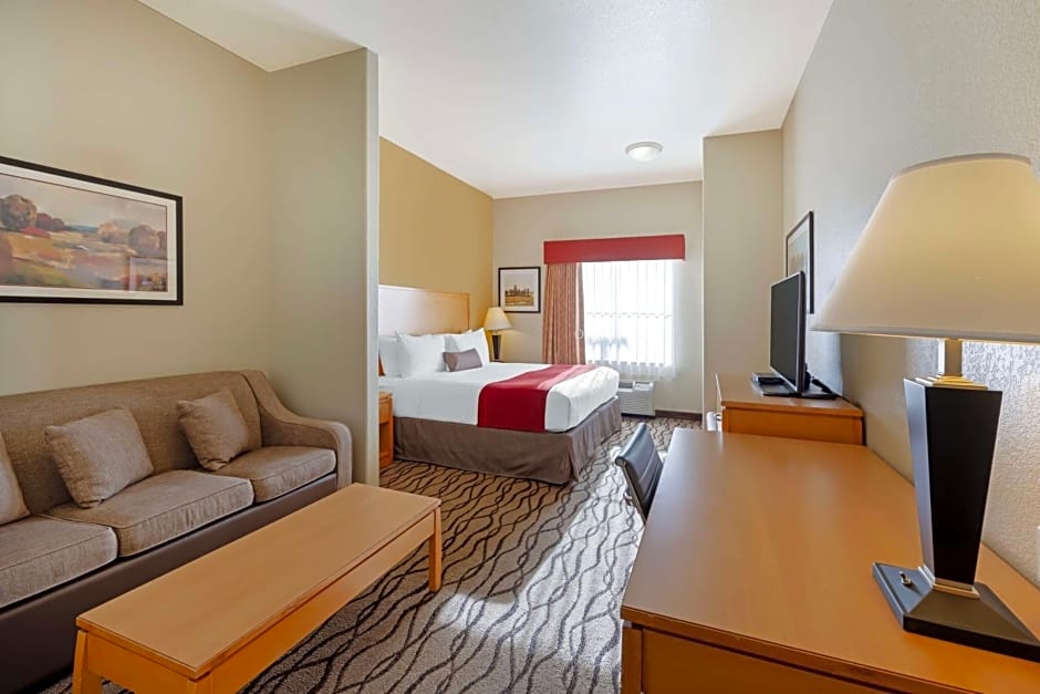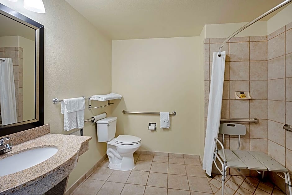1 King Bed, Mobility Accessible, Communication Assistance, Roll In Shower, Kitchenette, Non-Smoking, is 301 square feet and includes a king-size bed 150-183 width.