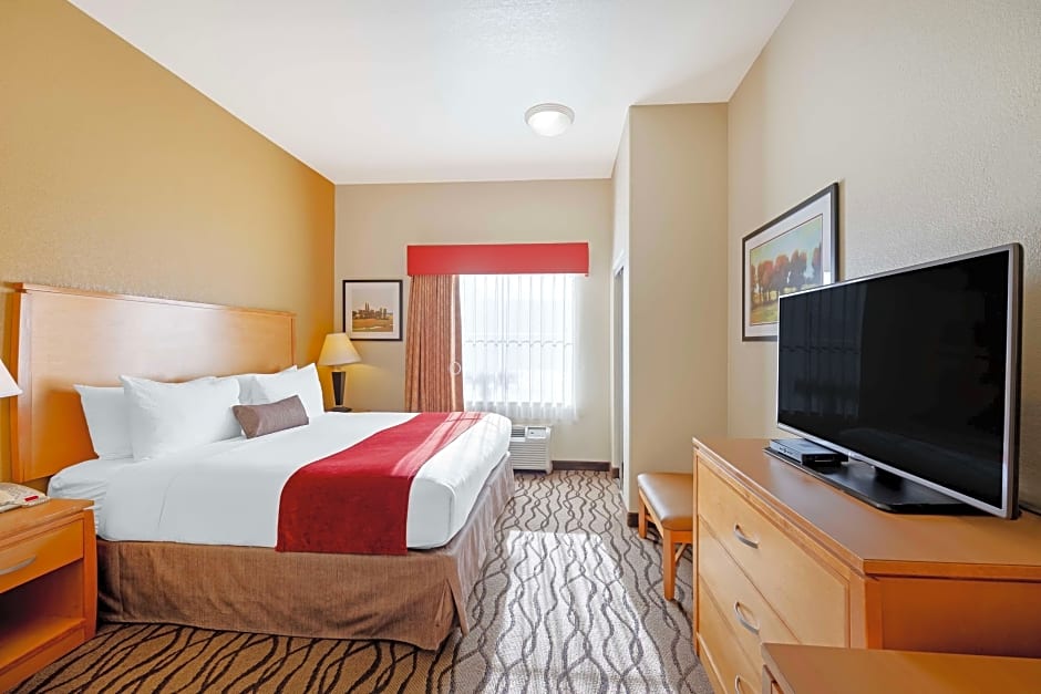 1 King Bed, Mobility Accessible, Communication Assistance, Roll In Shower, Kitchenette, Non-Smoking, is 301 square feet and includes a king-size bed 150-183 width.
